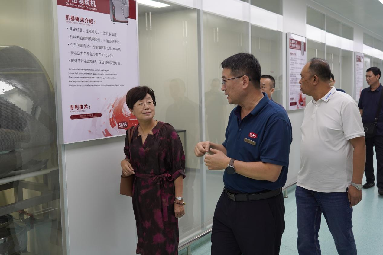 On September 16, 2025, Ms. Wang Yajun, Secretary-General of the China Pharmaceutical Equipment Industry Association, led a team, together with heads of multiple governing units, to visit SMA for research and guidance. Mr. Yin Wenping, Chairman and General Manager of SMA, and Deputy General Managers Ms. Sun Yanjie and Mr. Wang Hui accompanied the delegation and participated in the discussion.